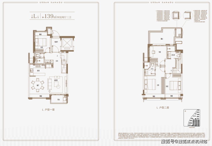 建面约139㎡上叠户型,三层是会客区,四层是居住区,阳台+露台+多个飘窗设计,附加空间非常大,在别墅类产品中实属罕见!