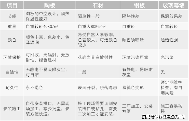 相比于传统石材、铝板等,陶板具有天然优势: