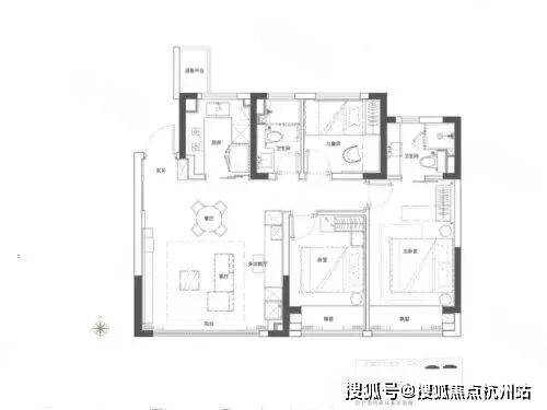 该户型有3个飘窗设计,有一定的赠送空间;