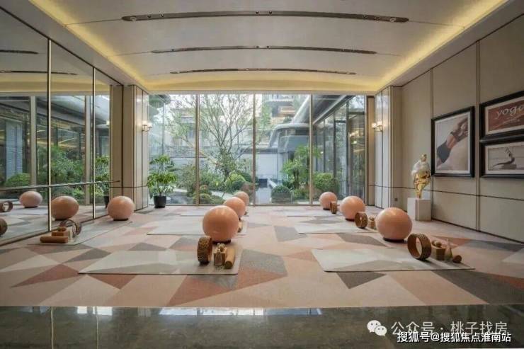 公区配置功能区非常丰富,恒温泳池、景观水系、瑜伽室、健身房、水吧……都是围绕下沉式庭院打造的,虽然整体占地面积不大,但是因为架空,层次感很足,一圈走下来,老费劲了。