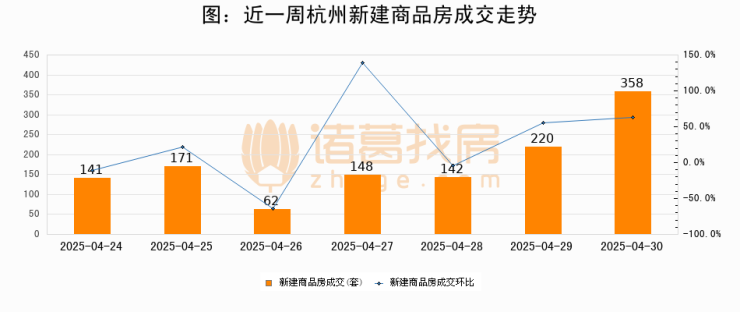 【杭州成交日报】04月30日新房成交358套、二手房202套;涨价房源831套