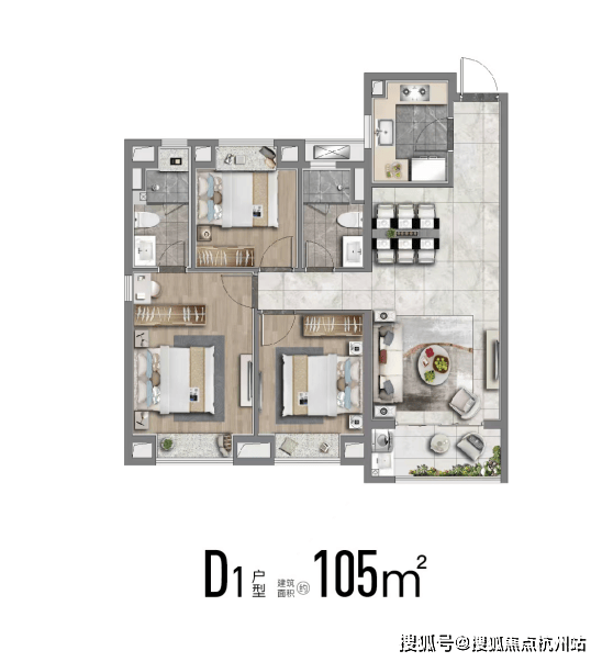 正三房设计,无论是98㎡精奢三房,还是113㎡舒适性三房,空间的尺度感十足,坚持不缩水。从主卧、到老人房、儿童房,每个人都有自己独立的空间。
