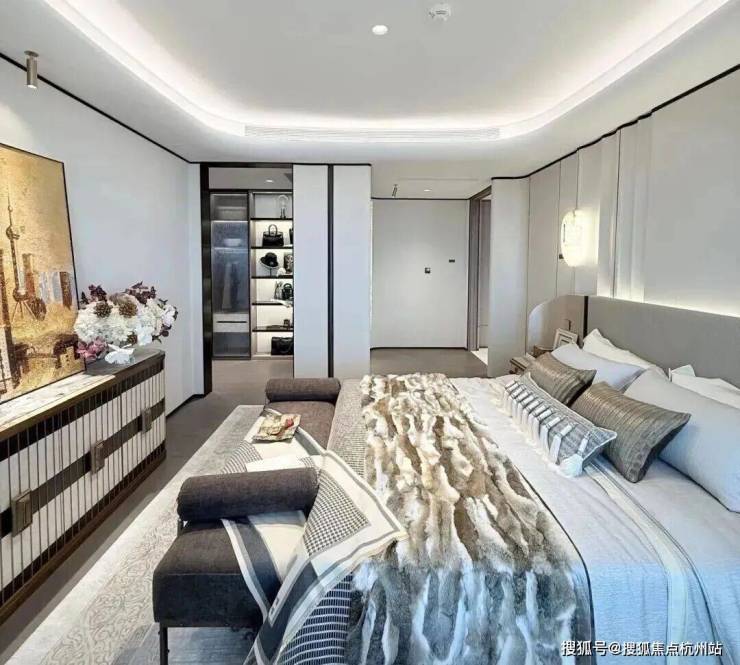南向主卧+主卫(带双台盆、浴缸),再加上一个巨大衣帽间,整个主卧套房的尺度也达到约50㎡,给家庭主人带来极强的满足感与尊享感。