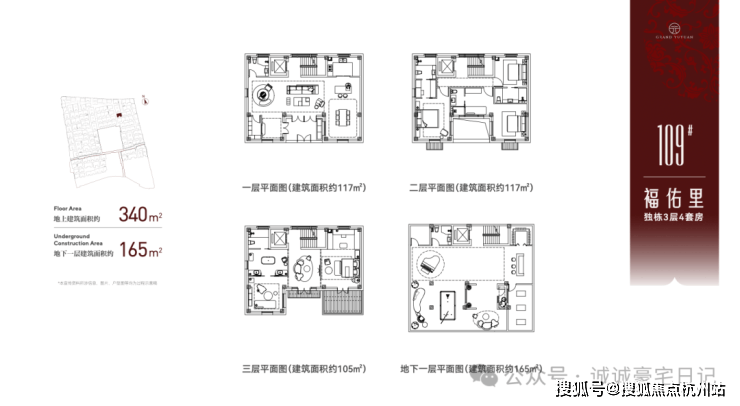 地上建筑面积约340㎡户型,地下一层建筑面积约165㎡。