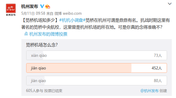 从微博投票结果来看,关注杭州发布的同学们语文功底非常扎实,闻是前鼻音,莺是后鼻音,都搞得非常清楚呢!