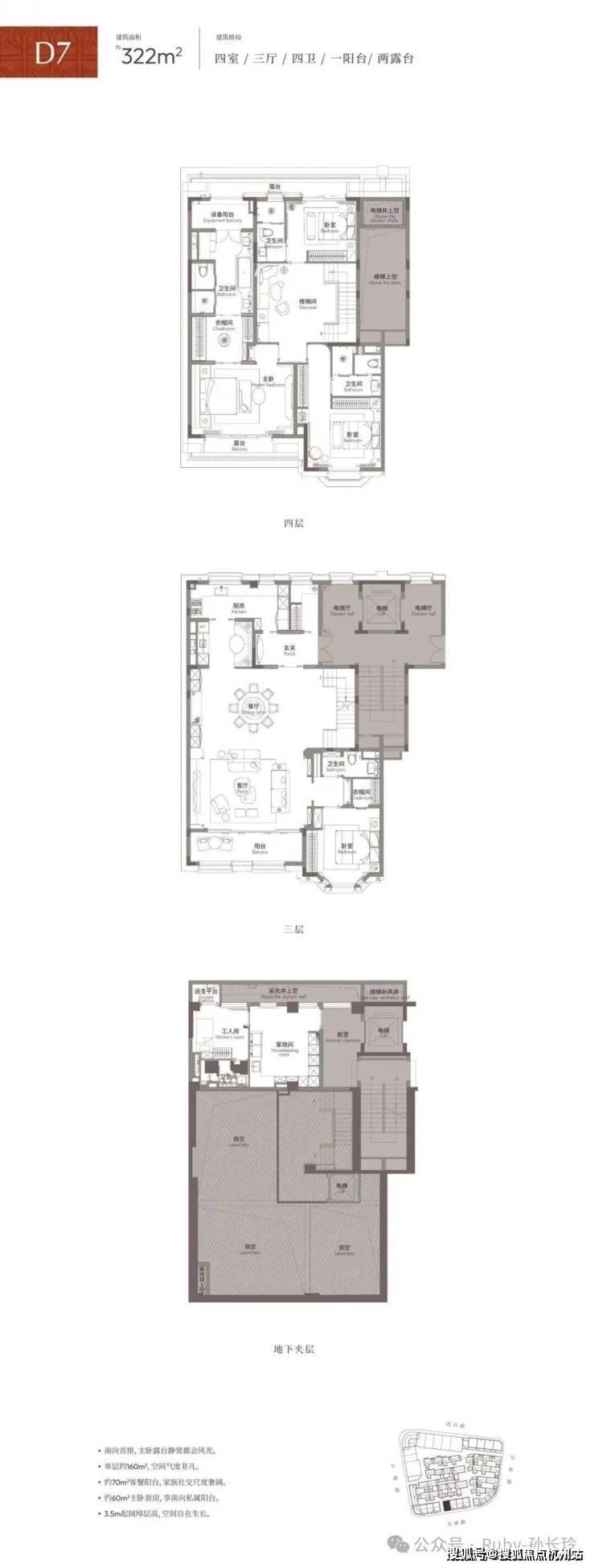 三层约3.5m、四层约3.6m层高,纵向空间感更显阔绰,舒居尺度跃然呈现。