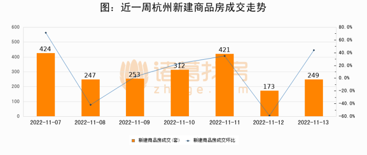 【杭州成交日报】11月13日新房成交249套、二手房113套;涨价房源42套
