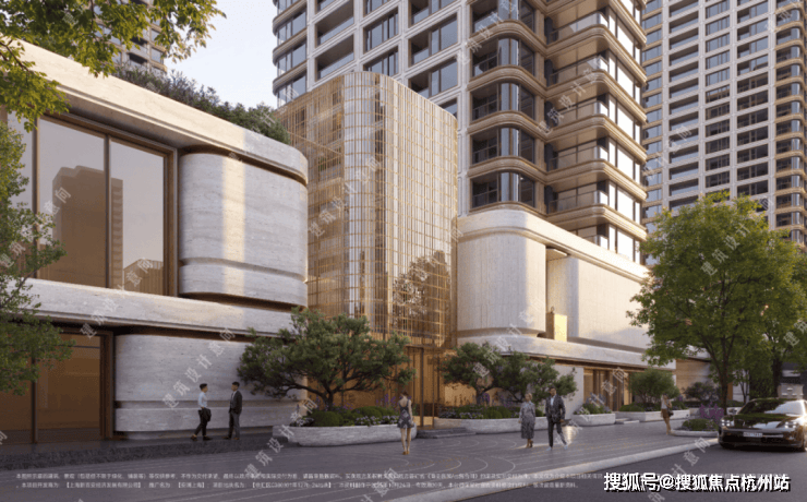 立面设计采用高奢商业街区的营造手法,既注重与周边环境的自然融合,又着力打造东安路沿线独有的精致奢感场域。石材肌理连绵起伏,形成丰富灵动的沿街天际线,更巧妙嵌入自然生态,未来出门就能citywalk。