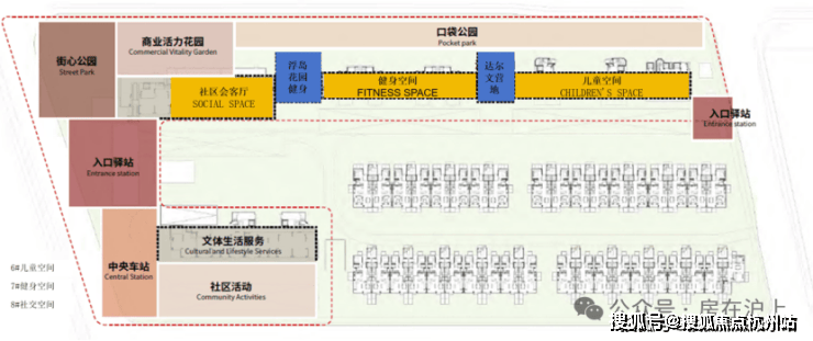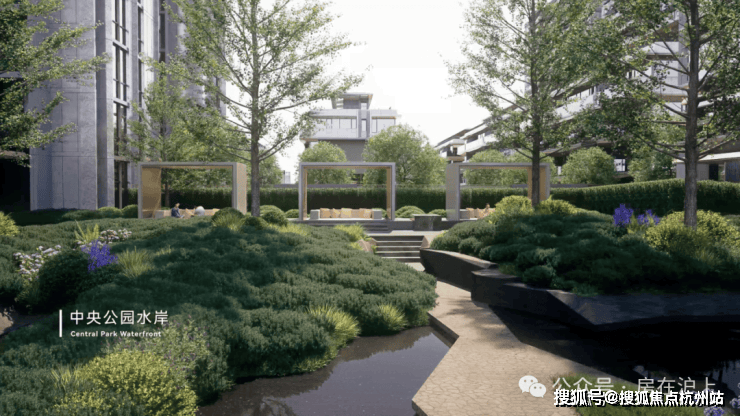 在社区内部,则通过一条自然水轴,串联六大景观节点,从约35米宽的酒店级社区大门,到内部水院以及不同主题的景观花园,步步皆景。