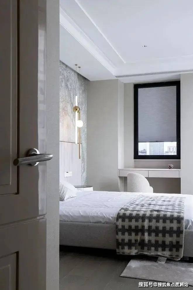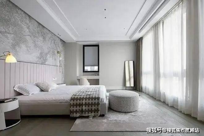 主卧室运用素色当主题,巧妙进行设计层面的良好衔接。在梳妆台和墙体标准融合下,构造更静谧祥和的多功能空间。