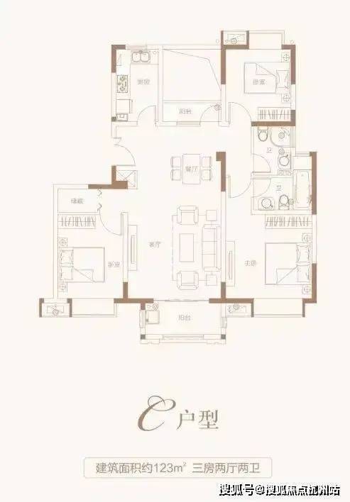 建面约123㎡3房2厅2卫