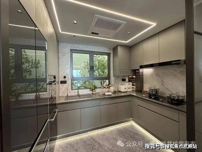厨电采用的是全套博世——双开门冰箱、油烟机、燃气灶、洗碗机、蒸烤一体机、暖碟机。还有3M末端直饮水,弗兰卡水槽+龙头,特别是这个大金厨房空调,厨房专用的防油烟的款,造价比寻常空调更贵。