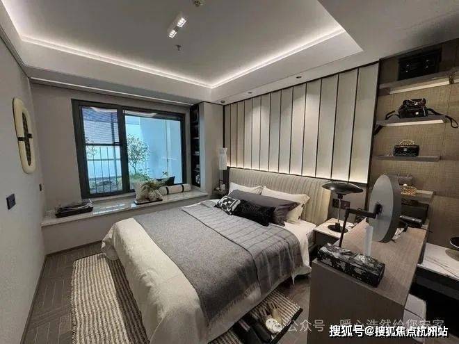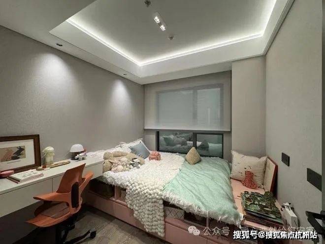 国誉府这个98㎡是飞机户型,本身比动静分离的三房空间利用率要高一些,加上又是纯洋房,天然的高得房率,因此这个主卧尺度感非常好,比一般户型主卧更大、更方正,主卧床头背景墙也是交付标准。