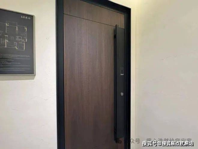 国誉府样板间做得是A户型建面约98㎡,入户门从外头看是深色的,转入室内,为了统一视觉效果,门内改成了浅色。