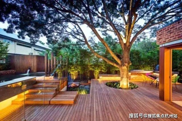 别墅沿廊处铺些防腐木,配小桥流水,假石盆栽,各式雕塑,让夜晚变得更浪漫,别具一番风情……
