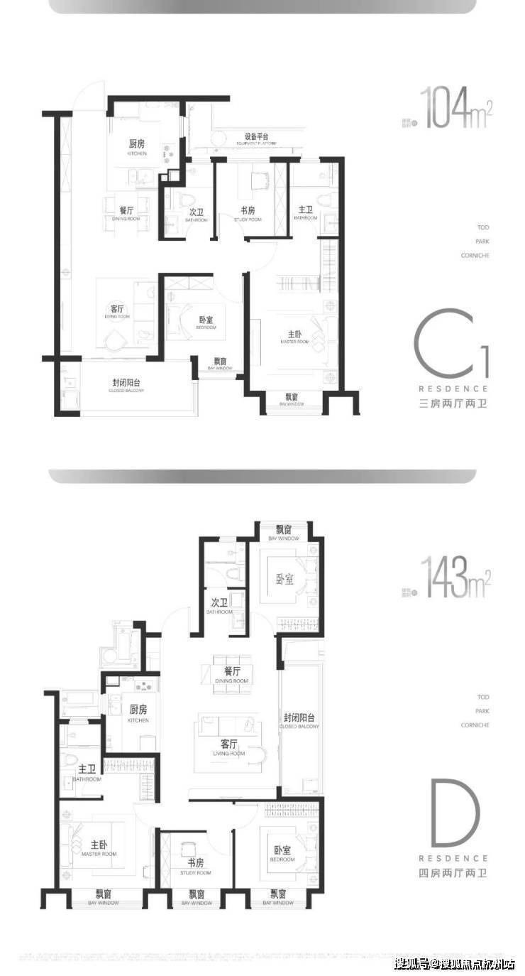 C2户型104㎡及D户型143㎡▼