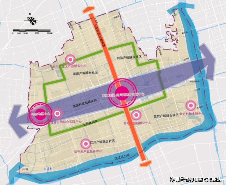 同时,上海2035规划,上海南部科创中心将以15号线和浦西科创中轴带为聚焦,北与虹桥同频,南与紫竹高新区联动,串联漕河泾开发区与徐汇,上海南部科创中心。未来,以元江路商务区为中心,将北接大虹桥国际商贸带,南连“大零号湾”,东连吴泾“滨江战略留白区”、西接马桥人工智能区的生活秀带,成为千亿级上海南部增长极。