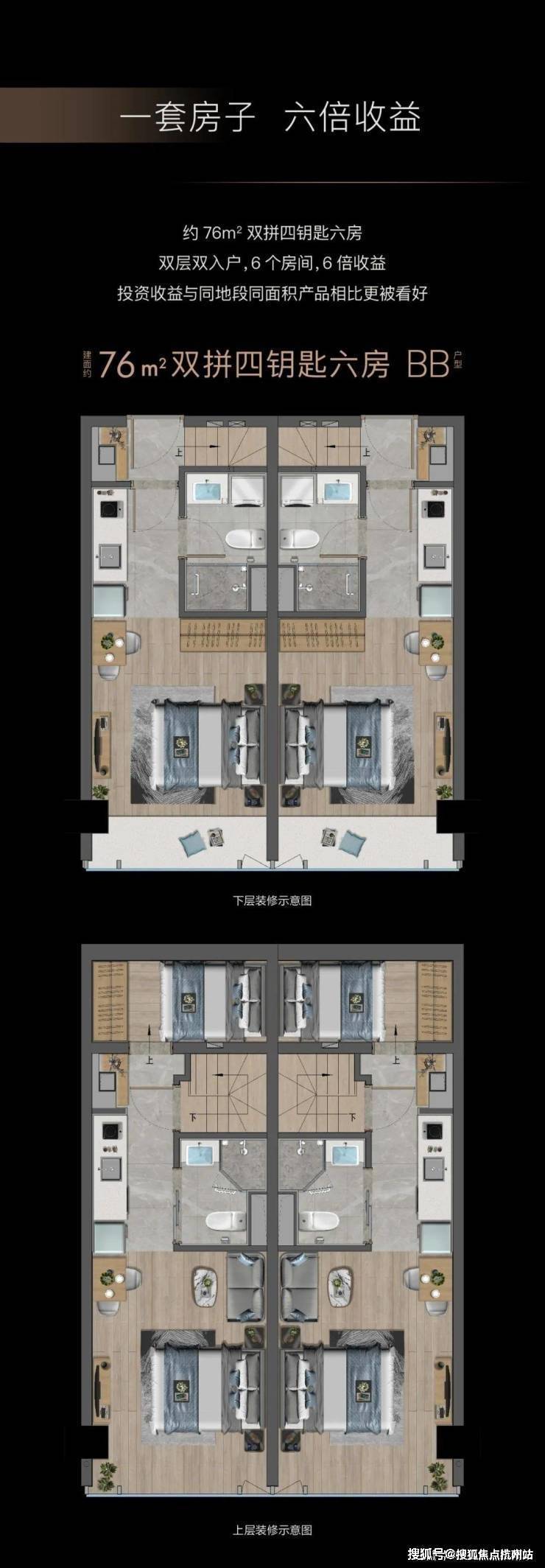 而约38-76㎡的产品构造上的应用,更将独特的几何审美诠释得淋漓尽致。在房产开发新政下,按最小单元分割的产品空间,可以更低总价实现买一层,送一层。周边高端产业、大型企业汇聚,也奠定了高租售市场的前景需求。