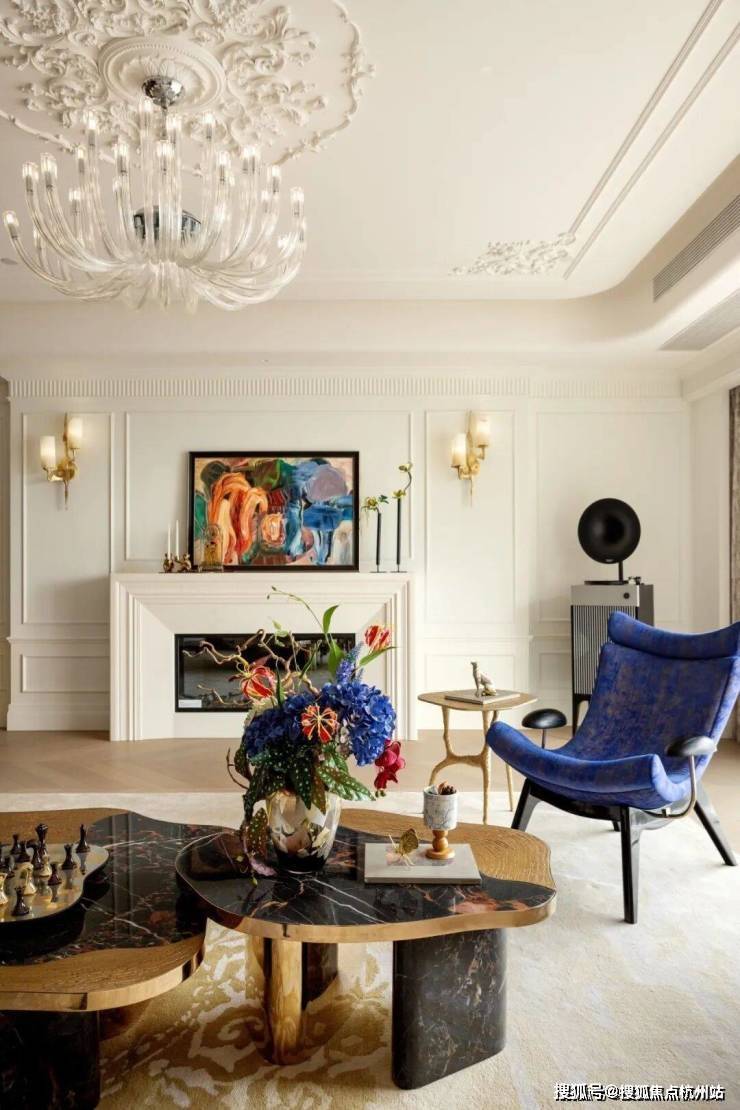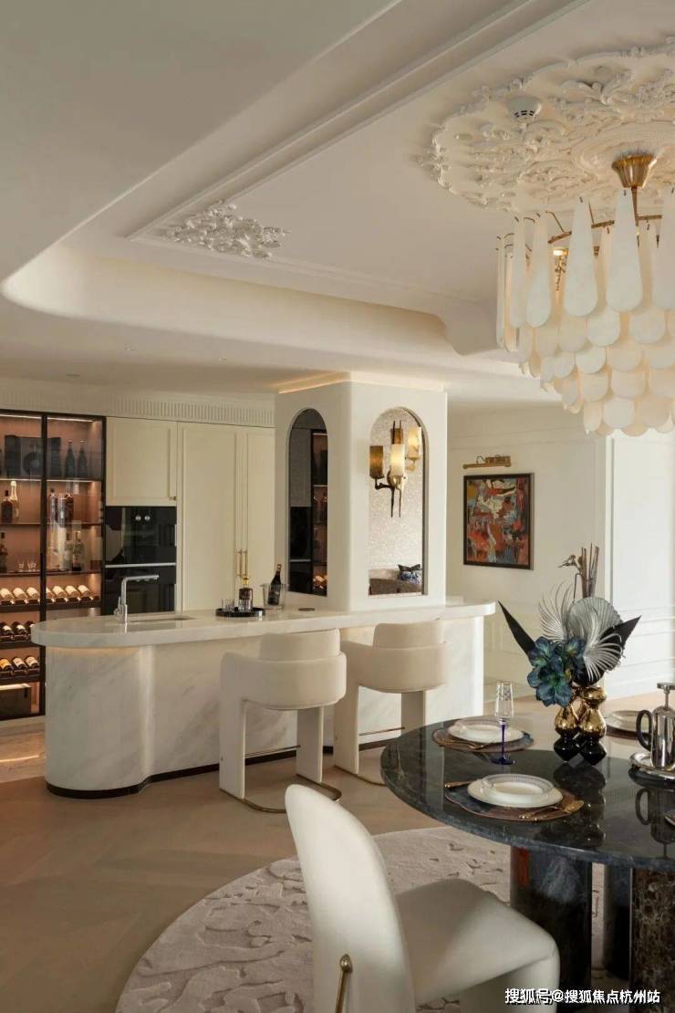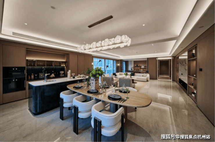 中间套的客餐厅更是达到约100㎡ ,一张12人的大圆桌也有充足的空间优雅转身。周末约上好友来聚会,给主人赚够了颜面。