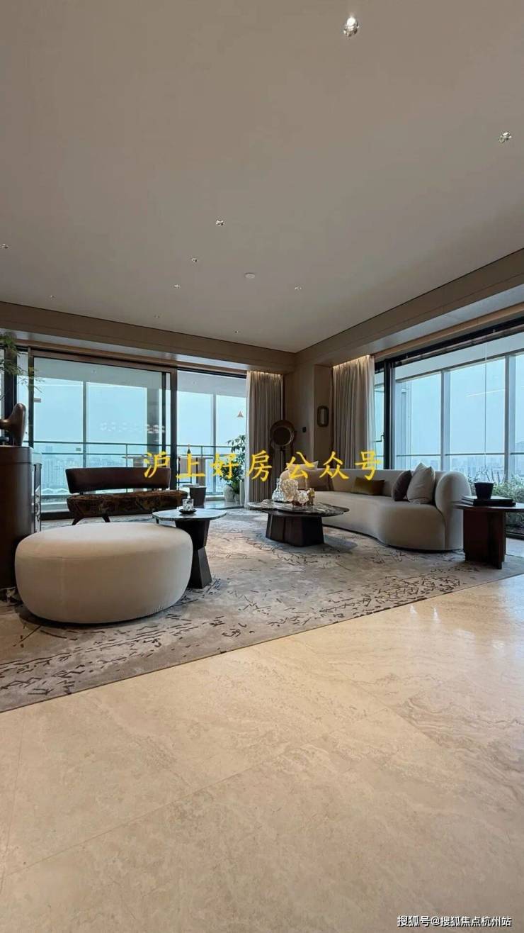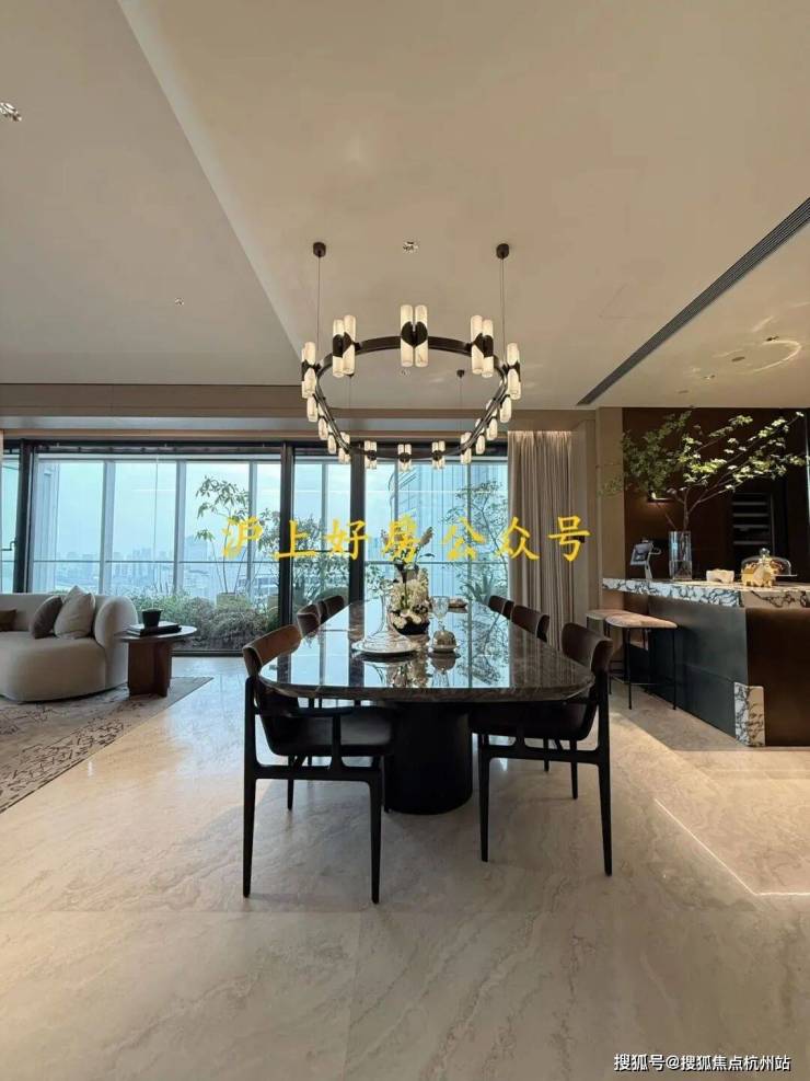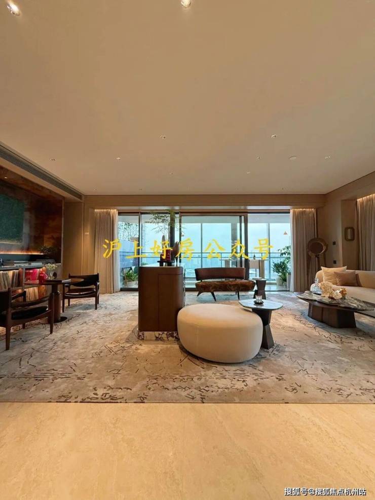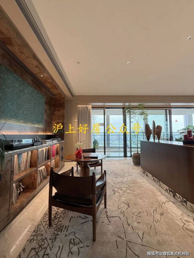 设计背书由问鼎国际大奖的著名设计师吴滨操刀,延续其“汤臣一品5亿顶复”的“摩登东方”理念。以黄浦江为灵感,营造“阅尽千帆后的宁静与松弛感”。通过8.5米南向宽厅、270°环幕玻璃、无冗余装饰的减法美学,让空间如江面般舒展,视野极度开阔。