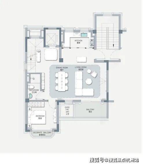 项目通过 一楼家庭庭院,二楼星空露台,三楼罗密欧阳台,复原经典的三段式设计规制,还原出武康路罗密欧阳台的经典邬达克式摩登场景。