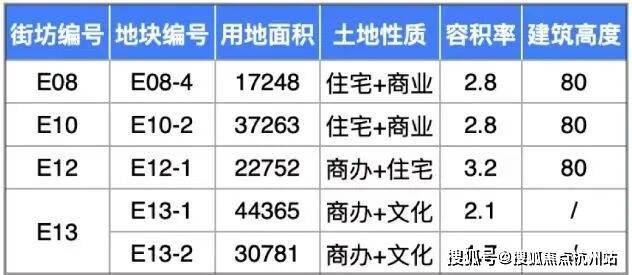 具体地块指标如下