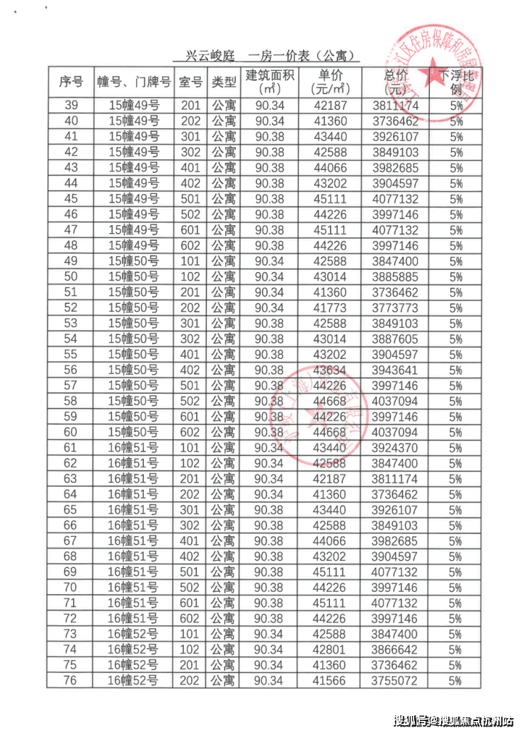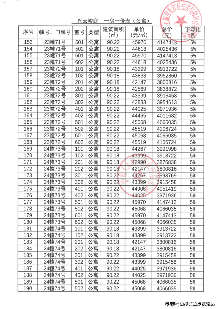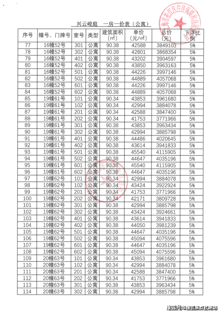 一房一价表: