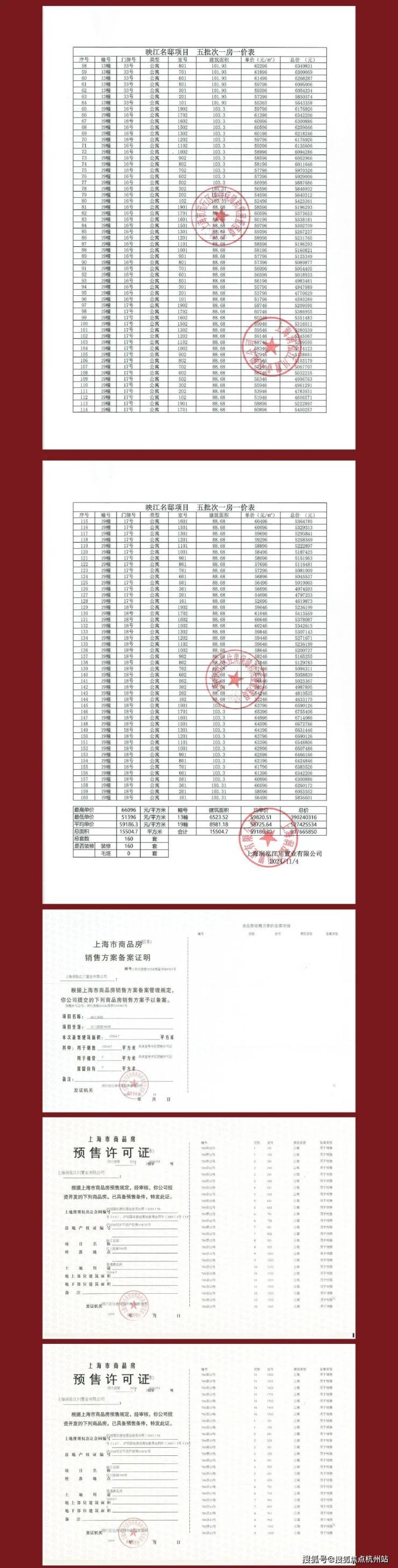 本资料为要约邀请,不作为要约或承诺,项目具体信息以政府最终审批文件为准; 项目周围环境、交通及其他公共设施的效果示意以实际落成或政府部门标准文件为准。 有关学区划分根据政府部门当年的划分为准,不作 为开发商的任何承诺。 相关宣传内容不排除因政府规划、规定及分期规划、未能控制等原因发生变化,在不违反法律法规、合同约定前提下,本公司有权对该宣传资料细节进行调整或更新。 预售证号: 闵行房管(2024)预字0000120号、闵行房管(2024)预字0000164号、闵行房管(2024)预字0000232号、闵行房管(2024)预字0000269号、闵行房管(2024)预字0000351号。 制作日期: 2024年11月19日。 开发商: 上海润泓江川置业有限公司; 备案名: 映江名邸 ; 营销推广名: 映江润府