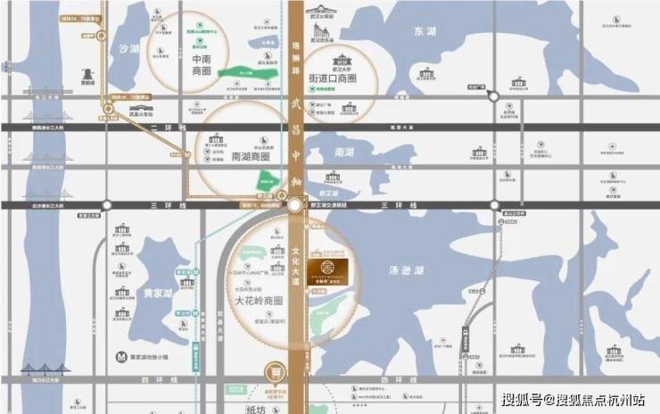 金融街金悦府位于文化大道与环湖路交汇处,在楼市划分属于文化大道板块,行政划分属于江夏区,距离三环线约4.3公里,属于三环外。