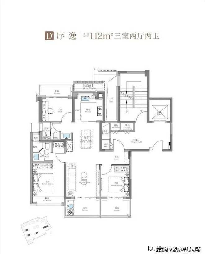 建面约114㎡3房2卫户型▼