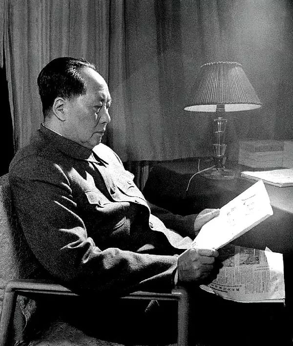 1961年,杭州,毛泽东在住地阅读人民日报。吕厚民/摄。