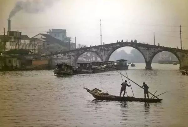 1970年代,杭州拱宸桥下,大运河里的小船儿。