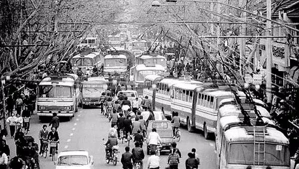 1986年,杭州,中山北路与体育场路交叉口。