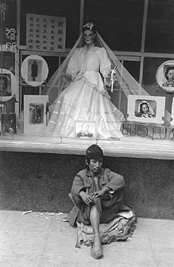 1949年,杭州,橱窗下的流浪汉。