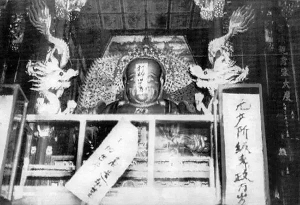 1966年, 杭州,灵隐寺的菩萨被贴上标语。