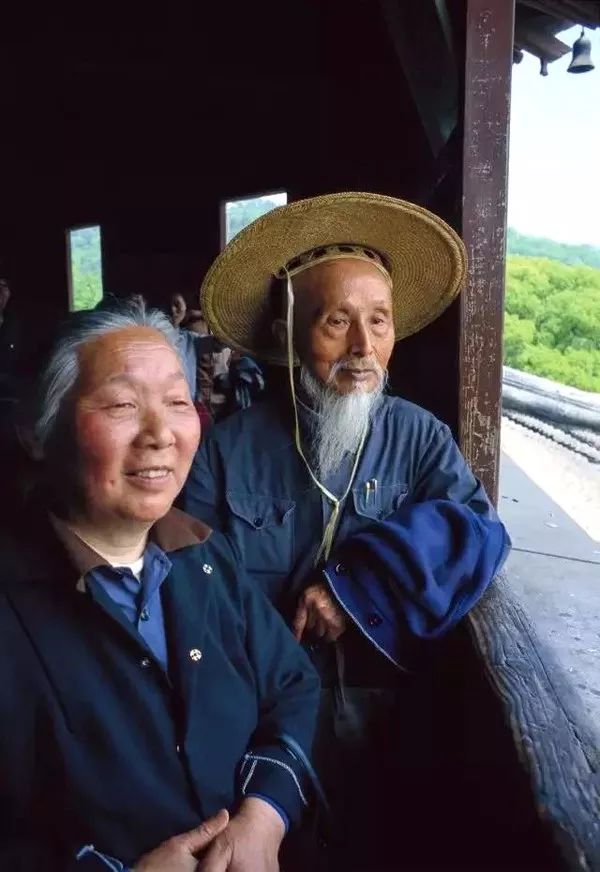 1981年,杭州,一对老夫妇在六和塔的回廊上俯瞰下面花园中的紫藤花和远处的钱塘江。