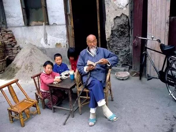1981年,杭州一个弄堂,爷爷和孙子们在翻看着小人书《三国演义》。阿德里亚诺•马达罗/摄。
