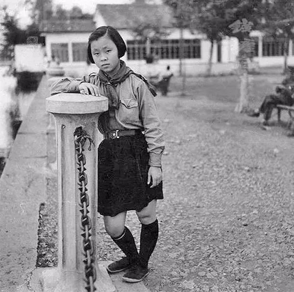 1940年代,杭州湖滨公园北界尽头,给自己留影的小姑娘。张颂恩/摄。