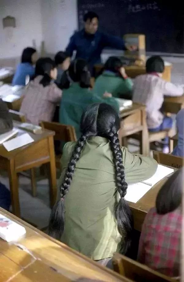 1981年,杭州,扎麻花辫的学生。