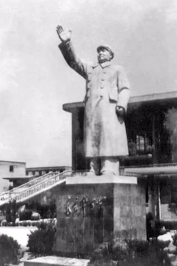 1970年代,杭州体育馆内,毛泽东塑像。