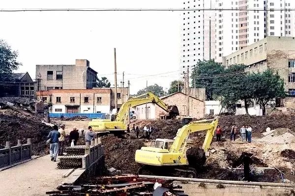 1997年10月,杭州东河上安乐桥,旁边是正在建设中的西湖大道。
