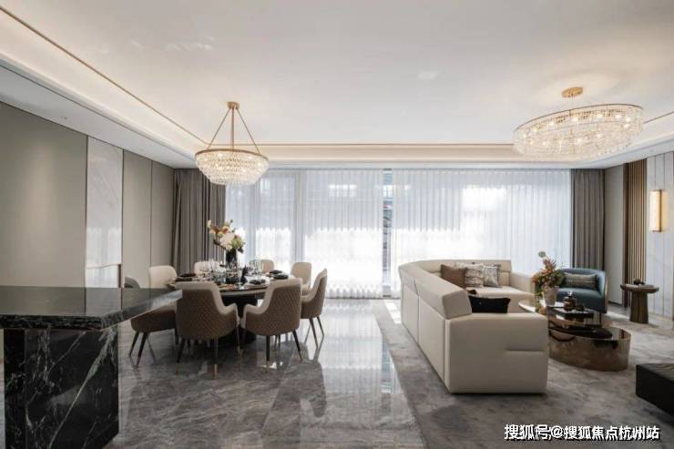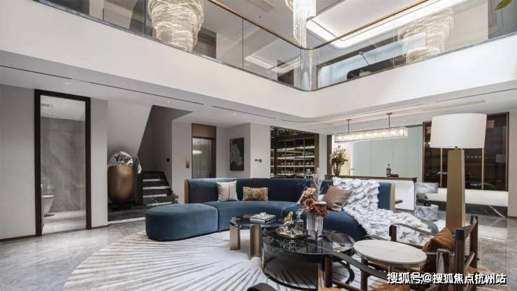 摆上一组沙发,或静坐闲读,或花园晚餐,或邀三五好友欢聚,都有一种悠然自得的安定感。长面宽、短进深格局来到室内,一楼层高约3.4米、面宽约7米大横厅霸气十足,搭配大面落地窗,阳光清风肆意涌入,将室内映衬的一片明亮,毫无阴影死角。