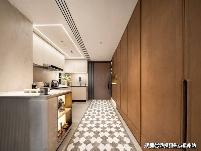 更让人惊喜的是,这里还有智能家居系统、消毒鞋柜以及用于冰箱内嵌冰箱的“S墙”。仅仅是入户这一部分,就已经亮点满满,让人充满期待。可以想象,在这样的空间里生活,每一天都如同置身于梦幻之中。