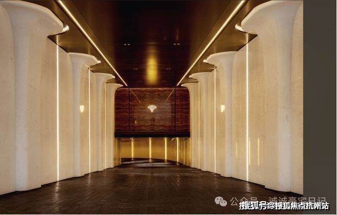 门庭延街的外立面,以精工定制弧形米色石材为主调,镶嵌典藏级老虎玉大理石,点缀古铜色现代海派艺术感灯器,整体呈现出百年海派的贵雅气质。