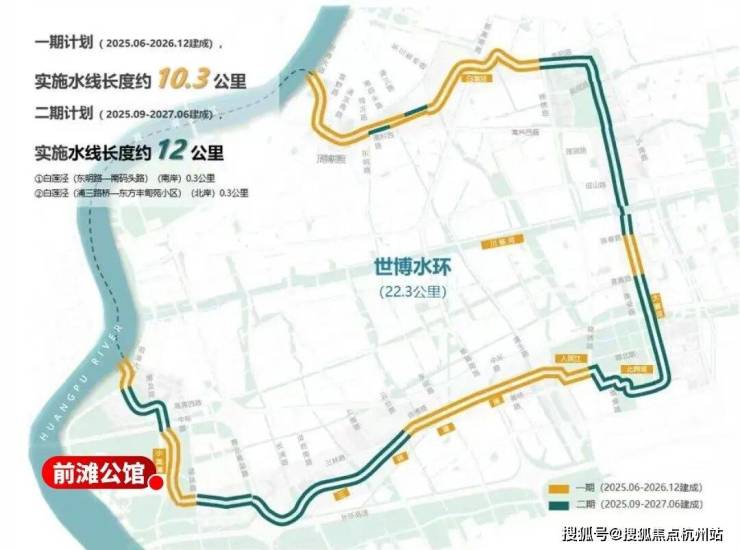 日前,继陆家嘴水环之后,世博水环一期工程正式开工,全长约22.3公里的世博水环,由白莲泾、大寨河、北界河、人民江、三林塘港、小黄浦(直线距离前滩公馆约400米)6条河道构成,与黄浦江衔接成“O”字环形。