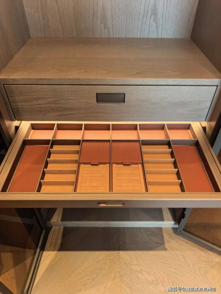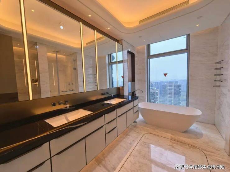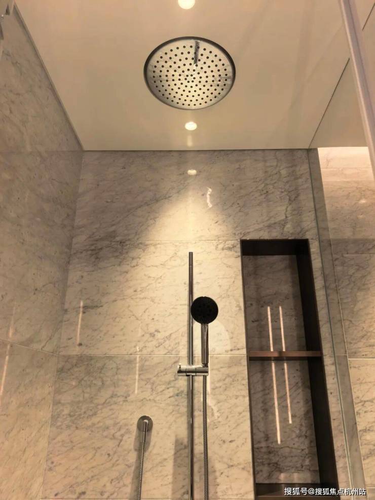 除了保姆房卫生间,其他卫生间清一色的用到了一线卫浴品牌——劳芬和当代,尤其主卫之豪华,那也是秒杀很多五星级酒店,地面鱼肚金石材、双台盆、劳芬浴缸,带按摩功能的淋浴房等等配置,让人眼花缭乱。