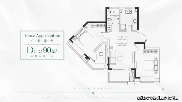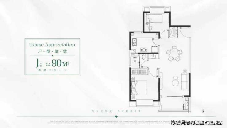 建面约90㎡2房1卫户型,对于预算有限但是想要入住黄浦江沿岸、入住三轨交TOD,享受前滩繁华的购房者来说,这个户型非常值得一看。