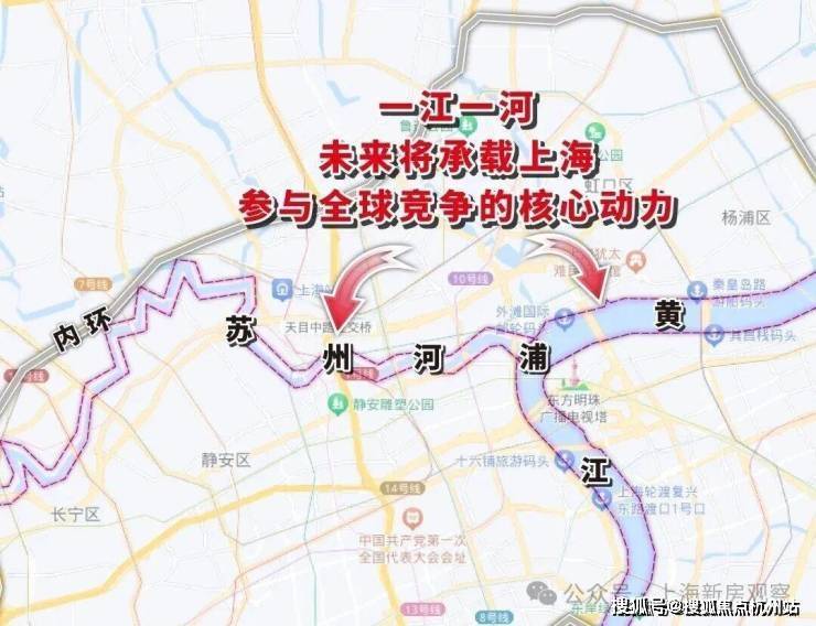 在静安、闸北合并之后,这片土地的城市更新速度加快,苏河湾板块在2016年的苏河湾十三五规划期间,将目标定位: “要重新拿回上海‘都市之心’的宝座”,在随后的“2035规划” 中,苏河湾更是被布局为世界级中央活动区,未来将是城市封面的存在。 苏州河站位“一江一河”规划,对于上海来说,未来苏州河沿岸应当是比黄浦江更适宜居住的存在。