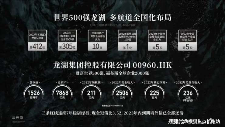 强大的品牌综合实力:龙湖集团,《财富》世界500强,全国房企10强,坚持全国化多航道布局中国地产稳健代表企业。