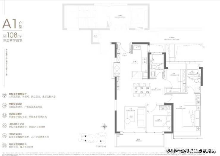 108㎡的入门级三房,起步门槛相比润府提高不少。